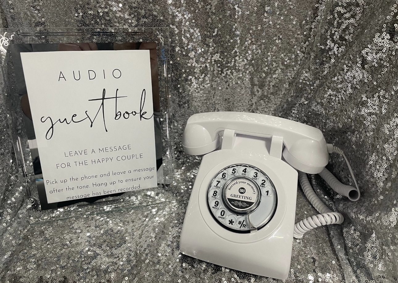 Het audio gastenboek is een unieke manier om de stemmen, groeten en gelach van je gasten vast te leggen op jouw speciale evenement. Vergeet traditionele gastenboeken; met ons audio gastenboek kun je de gelukkige momenten vastleggen en herbeleven wanneer je maar wilt.